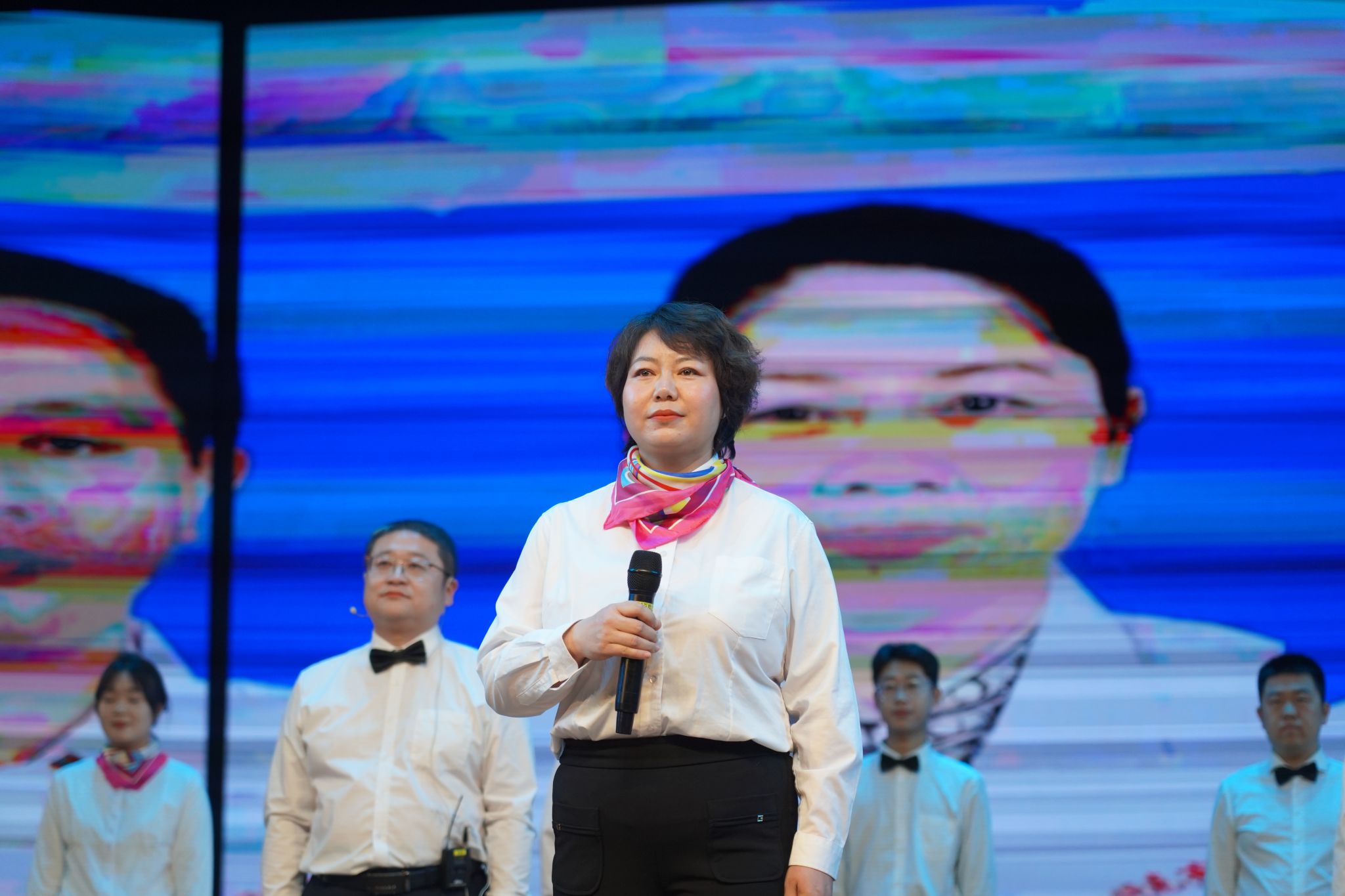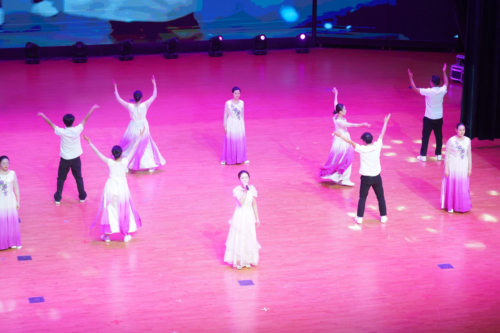 第四篇章“赓续奋斗·再谱新篇”激情涌动,舞蹈《扬帆起航》勾勒出新时代征程上劈波斩浪、奋楫争先的壮阔图景;小品《孕期知识健康科普》将科学孕育理念融入百姓生活叙事,让知识普及浸润人心;由《苏堤夏谣》《春暖花开》《一起向未来》三曲串联而成的融合舞,跃动着携手共赴美好明天的激情与信念;该篇在经典旋律《明天会更好》的深情演绎中升华,凝聚起对未来的无限憧憬与美好信心。