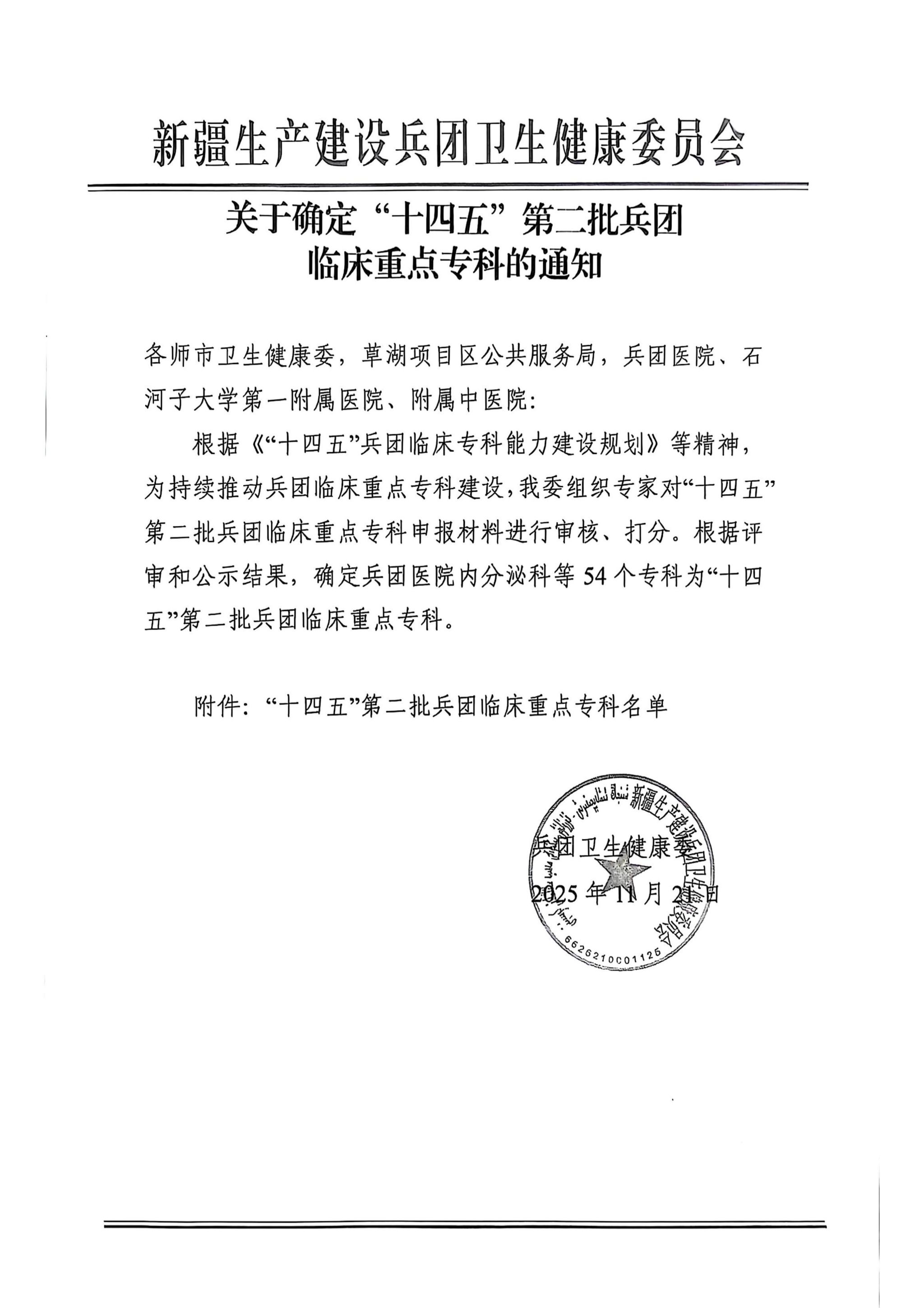 此次入选,标志着我院重点专科建设再上新台阶。未来,医院将全面推进医院学科建设,不断提升医疗技术水平,为全方位保障各族职工群众健康福祉注入不竭力量。