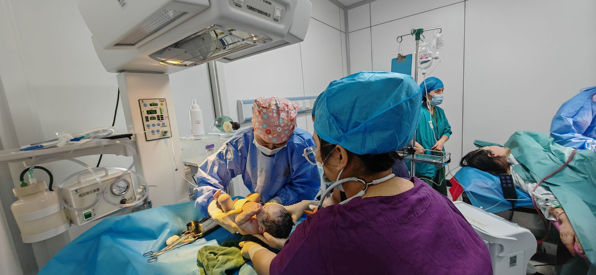 救治刻不容缓。助产士阿娜姑持续以膝胸卧位托举脐带,避免加重胎儿缺氧;热依汗姑麦麦提明医师快速评估后,当即下达急诊剖宫产指令,同步经急诊绿色通道报备产科主任李代容,并呼叫相关科室支援。麻醉科医师3分钟内抵达,快速完成术前评估及麻醉诱导;新生儿科医护人员携复苏全套设备同步到位,调试仪器后做好窒息复苏及即刻评估准备,各环节无缝衔接。
