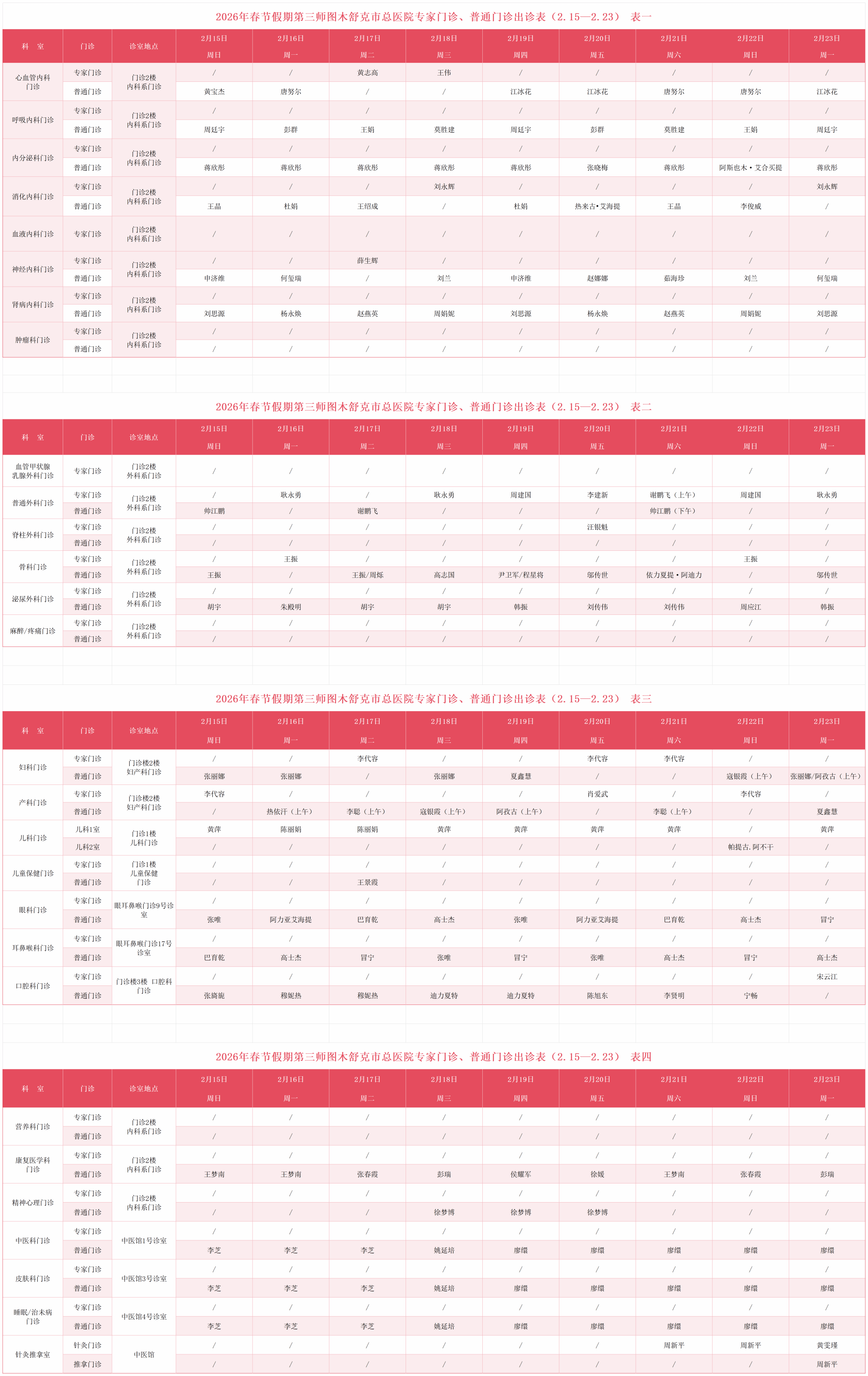 守护“马”不停蹄!2026春节期间门诊出诊表来啦(2月15日-2月23日)